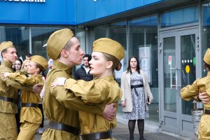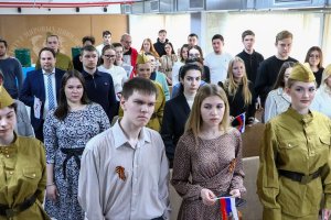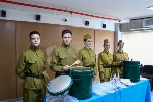 Студенты и преподаватели Института стали участниками интерактивной беседы «Хроника победы. Ключевые события Великой Отечественной Войны (в фотографиях фронтовых корреспондентов) 1941-1945 года». Посетили выставку уникальных книг о войне, узнали историю их авторов. Никого не оставил равнодушным просмотр документального фильма «Смоленск – город воинской славы». Выставка «Война глазами художников» позволила участникам мероприятия увидеть фрагменты войны: отчаяние и надежду, боль утраты и радость победы. Особое место заняли трофеи войны: кружка, фляжка, вещмешок, видео камера. Студенты узнали о важной роли тылового обеспечения формой, одеждой, сапогами. Принято считать, что наиболее представительным продуктом в армии была гречневая каша с мясом. После войны на всех праздниках полевая кухня с гречневой кашей ассоциируется именно с армией, именно с победой, поэтому для всех участников была организована настоящая полевая кухня. Военные песни стали символом и голосом Великой Победы. Так, песня «Синий платочек» дарила надежду на встречу всем, кто уходил на войну. Коллектив бального танца ИМЦ подготовил и исполнил танцевальные композиции «Военный вальс», «Марш победы». Началом и завершением мероприятия стало исполнение студентами и преподавателями песни «День Победы», которая стала гимном.